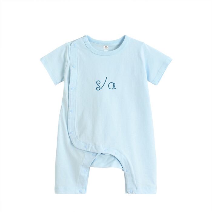 スナップボタンをサイドに配置し、赤ちゃんのおなかに負担のかからないゆったりとしたデザイン。